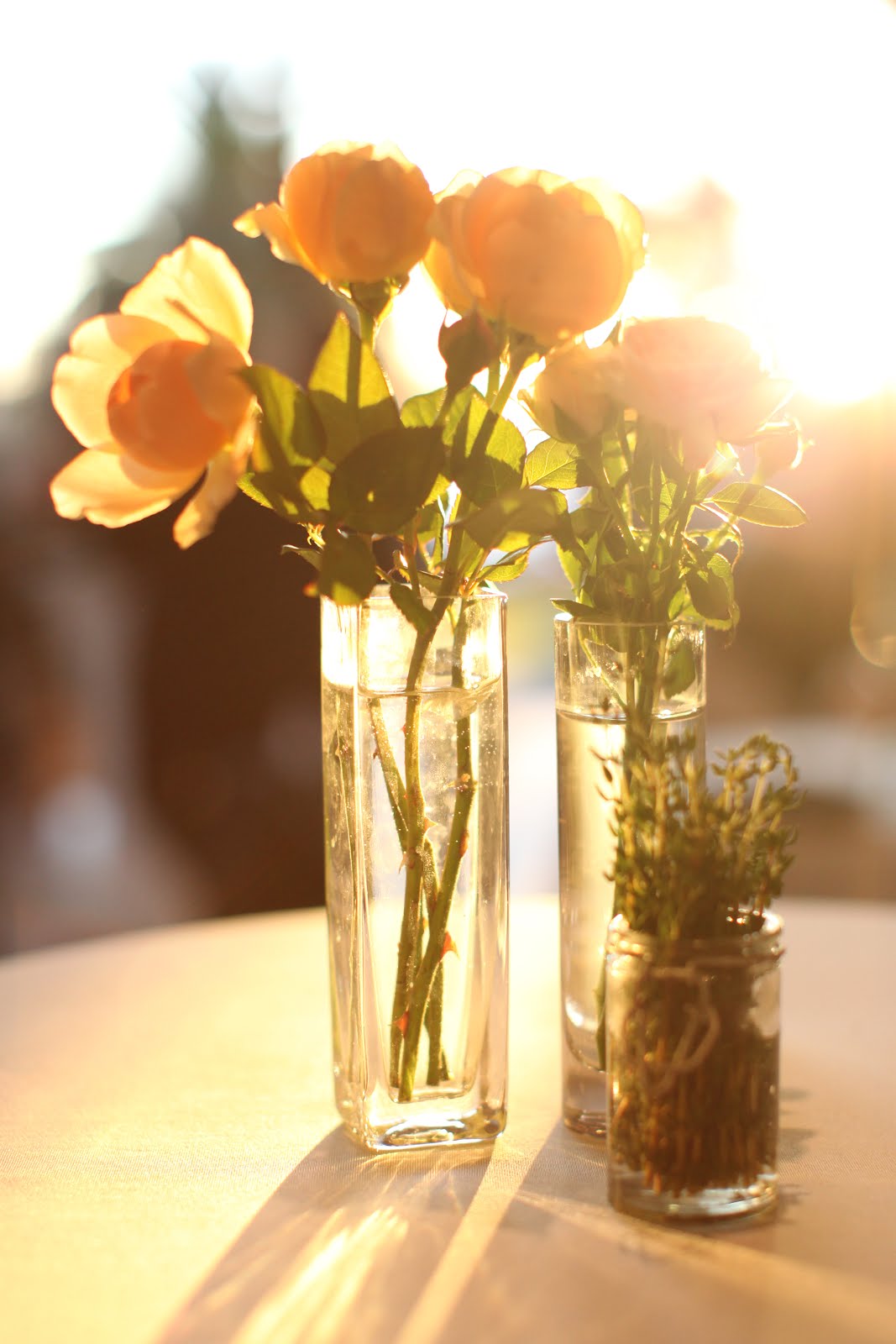 Jane chose pretty white flowers, with a touch of peach for the reception. It was a cocktail reception that looked like it was going to be outrageous fun! With clusters of vintage jars and bottles on the cocktail tables.