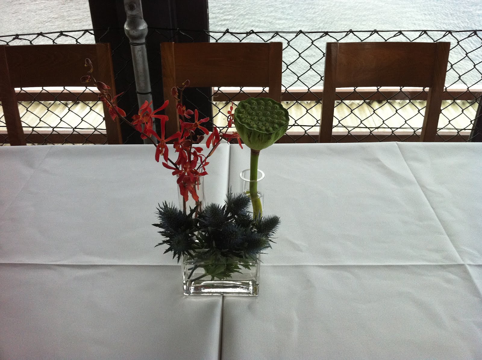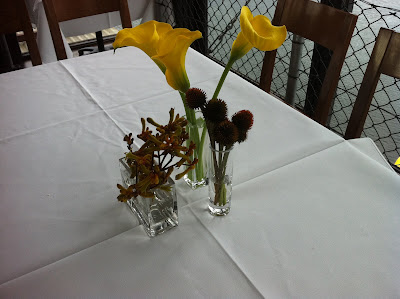 Then on the Saturday, Tegan and Sam got married at Nick's Seafood at Bondi! Sam was keen to go with some Vietnamese Fighting Fish on the tables - so we thought we'd keep it simple, and equally bright! with lots of different coloured hyacincths, which are just coming into season now!